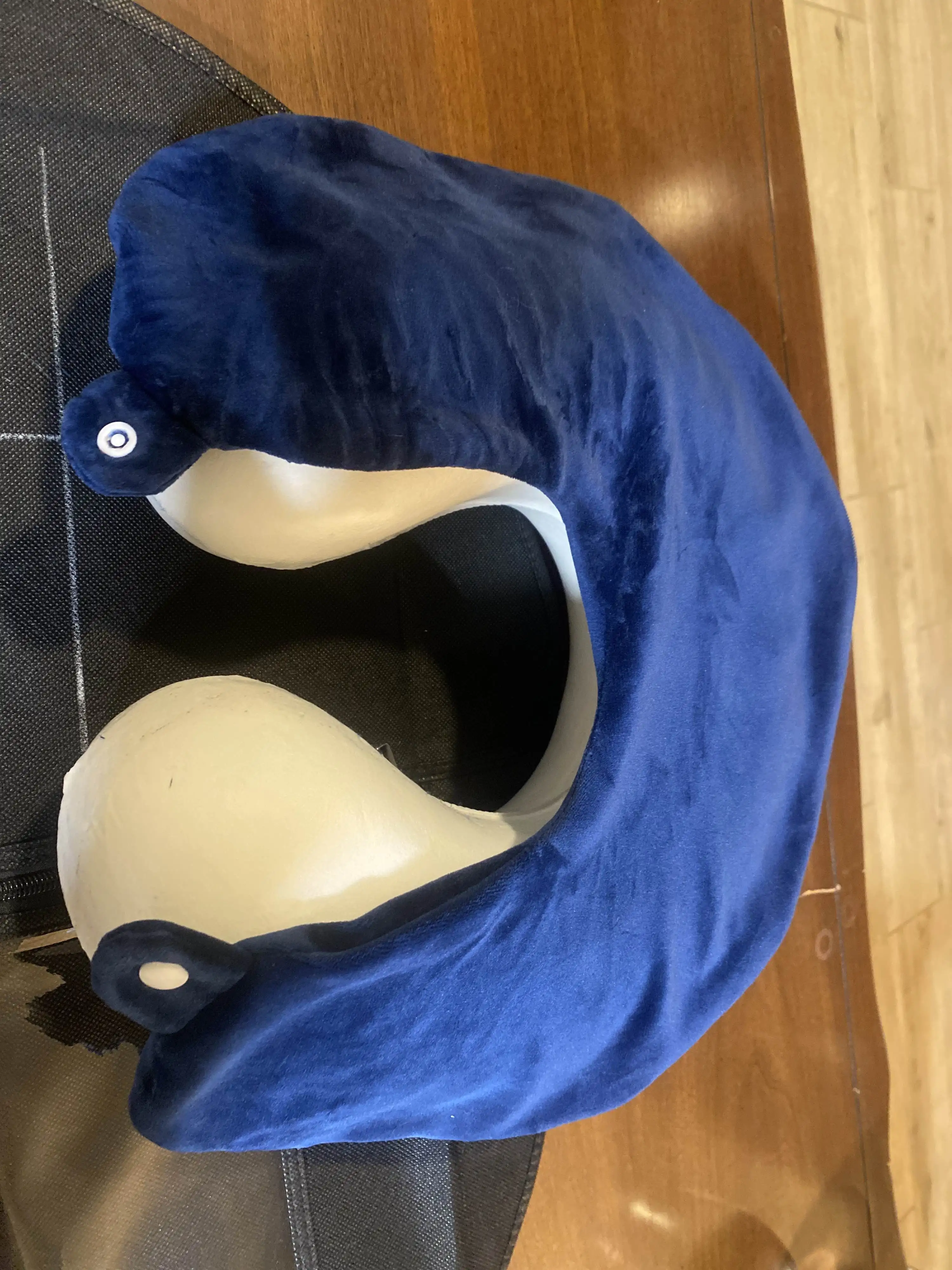 Almohada de vuelo azul marino Correa a presión acoplable Cubierta suave lavable Espuma viscoelástica para soporte de cuello de cabeza para dormir en avión
